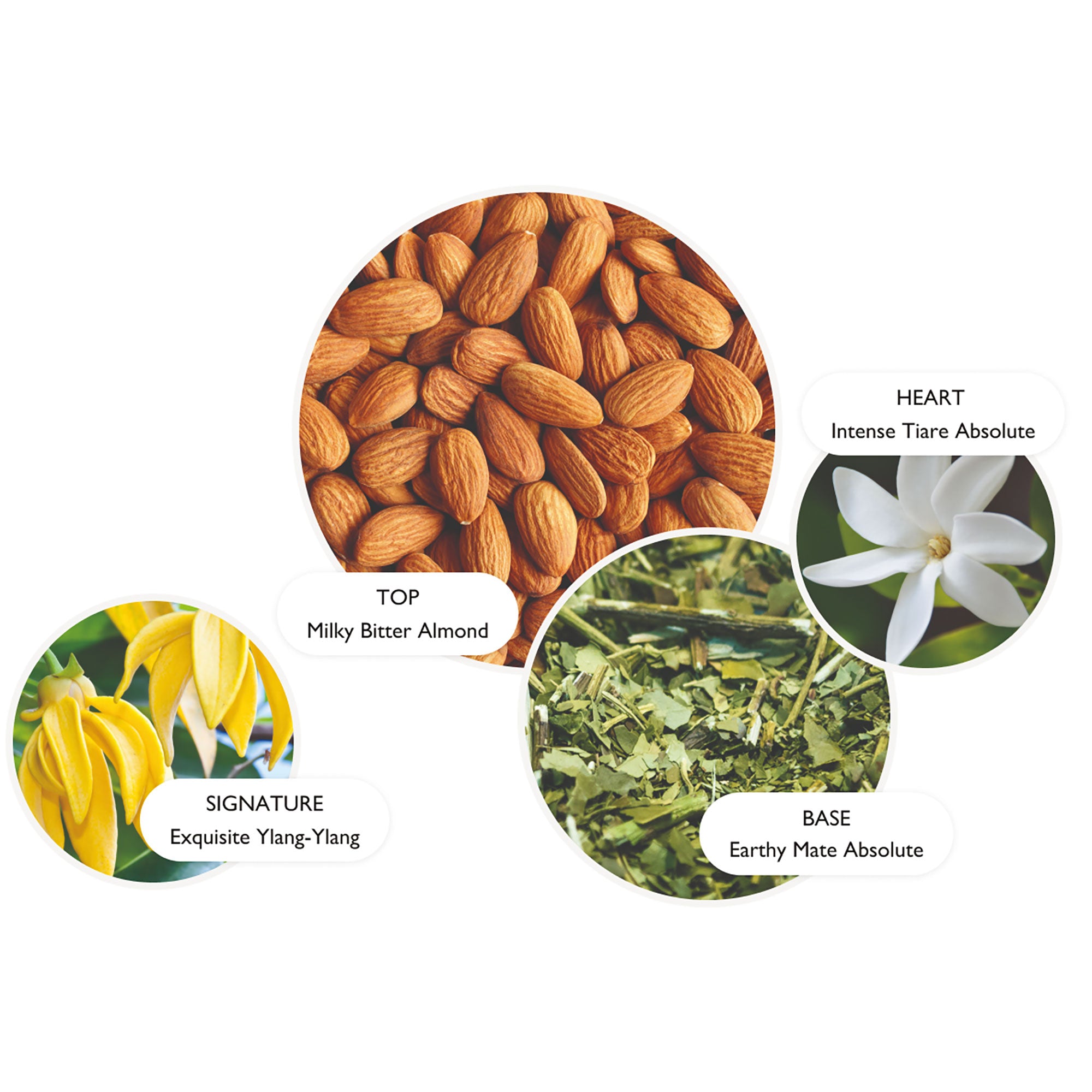 Transport the senses to languid mornings on an idyllic island with this fragrance. Solar notes of bitter almond soften into neroli and tiare absolute, culminating in a creamy trail of sandalwood and musk. Housed in a collectible and refillable glass flacon with a one-of-a-kind spherical resin cap.