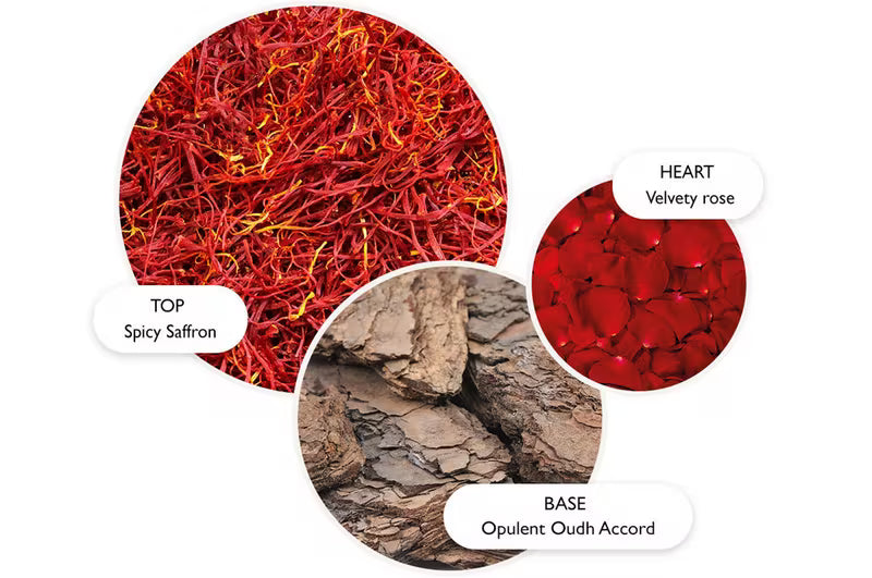 A blooming mirage glistening among dusty-pink sand dunes at sunset. Shimmering hazes of golden saffron, tinged with rich cassis. The floral swirl of velvety rose and geranium, swept up in earthy patchouli Sulawesi – silent and sumptuous. Fall under its spell; get lost in the mystic beauty of the desert.